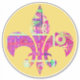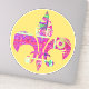 This is my original graphic art of a round shaped fleur di li abstract pattern sticker. The sticker is cut out in the round circle shape with a thin white border. This sticker is about 8 inches by 8 inches due to the cut-out circle border, however you may change size to larger or smaller, if desired. The stickers are a quality product that will not leave a sticky goo on your things, and they are printed with inks that won’t fade. Put them on anything you want to personalise and decorate or give as a gift.