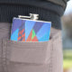 Well made flask, a little better than I had expected. Flask came in clear plastic box which gave it a nice presentation when I took it out of the zazzle packaging. Image is not printed on flask but on sticker. Don't know how this will hold up I haven't used it yet. This would make a Great gift! I plan to purchase more for friends! Cheers. I thought a little brighter than computer. Very crisp, writing wasn't