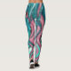 Colourful abstract art piece by Kevin Dailey on these super comfortable leggings.  These leggings feature a wonderful aqua/teal and raspberry colour scheme.  The artwork compliments the legs by creating long curves.  The artwork creates a slimmer look to the body and legs, as the eye is drawn to each colour separately.