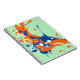 A stylish design of abstract expressionism art paint splash with colours of orange and blue against a mint green background. Arty and funky, this design is colourful and vivid.