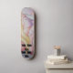 This original retro image of a posing lady is produced from my watercolor pencil painting. I painted this green lady from a photograph, I decided to paint the blonde haired lady in a 1970's retro style. It started as a sort of doodle and then turn into a little piece of of original artwork. I think this abstract posing lady really stands out on this original deck and I'm sure she'll be loved by everyone who likes original 70's style art. The text on this uniue skateboard deck is customisable. This image has been digitally enhanced to give it an engraved effect.