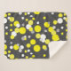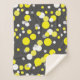 Beautiful And Stylish Abstract Art Various Shades of Yellow Balls / Dots Painting Throw Blanket to add to your home / office / business décor collection. A cool present / gift idea for all who love custom design unique items, positive vibes, art, geometry, organic theme etc. Change the background colour (grey) to suit your taste and style. Yellow, white, grey.