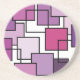 Based on abstract art this design incorporates a variety of pastel purple and mauve shades in a square formation.