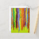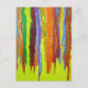 Colourful and unique abstract art design of thick rainbow coloured paint stripes dripping down the artwork against a bright, neon yellow / lime coloured background. The bright, warm colours will certainly create a talking point in your environment.