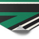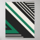 This abstract artwork showcases a clean and structured geometric design dominated by green, black, and white colours. The composition features intersecting diagonal lines and triangles, creating a sense of movement and depth. The green elements contrast sharply against the black and white background, making the design bold and visually engaging, with a minimalist yet modern aesthetic.