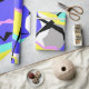 Happy Holidays Stylish Yellow Grey White Purple Turquoise Abstract Art Pattern Wrapping Paper to add to your home / business / office celebrations collection. A cool present / gift idea for all who love custom design unique, one of a kind items, personalised gifts, positive vibes colours, fun, joy, festive season, parties, decorations, planet, organic vibes etc. New Year, Christmas.