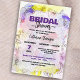 This Bridal Shower invitation is a harmonious blend of elegance and vibrancy, designed to capture the essence of celebration and joy. The backdrop is filled with gorgeous watercolor flowers in gentle shades of purple, pink, yellow, and green, creating an ethereal mood. The text is elegantly structured, using a variety of attractive typefaces that express both formality and tenderness. Every detail can be customised to make each invitation as unique as the bride-to-be. The invitation has a colourful background featuring watercolor flowers in shades of purple, pink, yellow, and green. “BRIDAL SHOWER” is written prominently at the top in bold purple letters. Below it invites guests to join in celebrating the bride-to-be with elegantly styled text. The gorgeous flower pattern provides a touch of delicacy and class, while the strong lettering draws attention to all the important details. This invitation is more than simply a means to invite guests to a bridal shower; it's a keepsake that the bride and her guests will treasure for years to come.