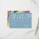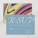 Modern design featuring plain retro blue rsvp front with colourful swirl marble artistic abstract pattern reverse personalised wedding RSVP card. Pink blue yellow colour palette. This card is easily editable. If you need help with the customisation of this product or you need more matching products for this collection kindly message me via Zazzle.