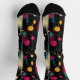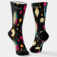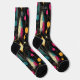 Elevate your style with these abstract artistic socks, featuring vibrant accents in pink, yellow, and teal set against a bold black background. The dynamic design includes geometric diamonds, circles, and expressive brushstrokes, creating a sleek and modern aesthetic. Perfect for art lovers and fashion enthusiasts, these socks add a unique and colourful touch to any outfit.
