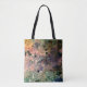 This is an artsy, abstract painting with a smorgasboard of colours including gold and black stars with pockets of glitter. Avant garde chic.