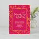 Boho sunset inspired abstract artsy bright hot pink and orange with golden foil frame and modern script personalised wedding invitation. This card is easily editable. If you need help with the customisation of this product or you need more matching products for this collection kindly message me via Zazzle.