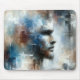 A human face profile emerges from a blend of abstract, textured brushstrokes in a range of cool and warm tones
