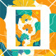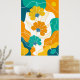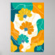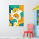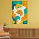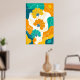Abstract background design with flowers in gold, orange, and blue in the centre. Suitable for hanging in any room that needs a beautiful touch of colour.