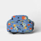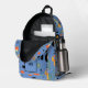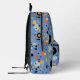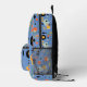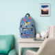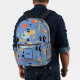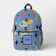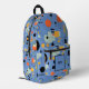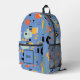 A backpack featuring an abstract Bauhaus design, vibrant and colourful, with a background colour that is customisable along with space for a name or message.