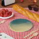 abstract beach background with sand and ocean paper plate