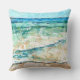 Abstract Beach Themed Painting Throw Pillow. Perfect for the cabin, cottage lake, or ocean side beach rental. It has a beautiful shoreline, waters edge painting in blues, teals and creams. Design by Jenn's Emporium.
