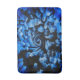 Abstract blue and black pattern glass pattern with centre vortex swirl