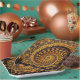 This product features an abstract geometric spiral fractal art in black and gold shades.