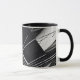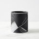 This black and white abstract pattern features a striking arrangement of intersecting diagonal shapes and lines. The design is chraacterised by its clean, linear elements and contrasting light and dark areas, creating a sense of depth and movement. Its minimalistic yet sophisticated aesthetic makes it an elegant addition to any modern space.