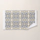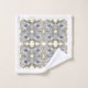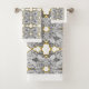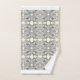 The striking design on these towels is all about the straight line. Each overlapping abstract shape has it's own striped pattern within it, creating a pleasing design for sleek, black and white modern powder room decors. Gold accents create an elegant addition. As an added bonus, you can customise the white background with a pop of any colour you desire.