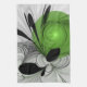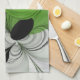 Abstract Black and White with Green Fractal Art Tea Towel