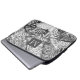 The sleeve is made of nice feeling material and seems very durable. I'm not sure how easy it'll be to clean, but the construction seems sound and the fabric is quick thick. I also like the double zipper. The printing is lovely and appears durable. The white on black contrast is nice, and the design very elegant.