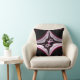 This symmetrical throw pillow features abstract spiky fractal art in black, pink, and white.