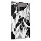 An abstract design featuring random shapes and ‘hello’ text in black, white and grey.