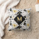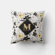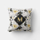 Abstract Black Yellow Grey Floral Monogramed Cushion