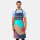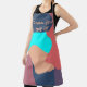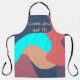 This apron has a geometric design of unformed blobs in shades of blue, orange, purple, yellow, and beet. If you want the same design with different colours, message me.