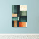 A modern abstract painting with bold rectangular shapes in deep green, warm orange, and earthy tones. The watercolor texture creates a soft balance between structure and fluidity, perfect for adding depth and style to any interior space.