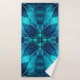 Abstract Bloom Aqua and Blue Fractal Design Bath Towel