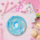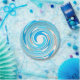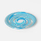 This beautiful round paper plate features an abstract spiral design in white, grey, light blue, and sky blue shades.