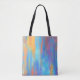 Roughly painted acrylic brush strokes in blue, turquoise, yellow and orange.
