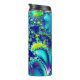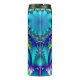 Abstract thermal tumbler featuring fractal art in vibrant colours: blue, cyan, neon green.