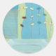 Blue, white and brown eggs parade on strings in this abstract painting by June Erica Vess. Separated into different panels, this piece features different shades of blue in the background as well as green. Get yours today!