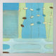 Blue, white and brown eggs parade on strings in this abstract painting by June Erica Vess. Separated into different panels, this piece features different shades of blue in the background as well as green. Get yours today!