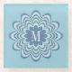 Abstract Blue Flower Custom Monogram Initial Glass Coaster