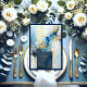 Abstract Blue & Gold Ink Splatter Artwork wedding