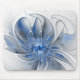Abstract Blue Gray Watercolor Fractal Art Flower Mouse Pad