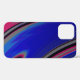 This abstract iPhone case features a swirly fractal design in dark blue, magenta, black, and grey.