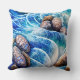 Abstract Blue Ocean Wave Marble Agate Gold Art Cushion