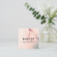 A modern blush pink alcohol ink makeup artist business card with script signature name. Chic and unique.