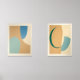 2-imprint, abstract, shape-boo sets in soft green. Suitable for a living room with green or light yellow colors . Use of beautiful, simple shapes that always fit well in combinations of lounge furniture and home items.