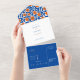 abstract botanical blue orange wedding RSVP All-in All In One Invitation