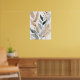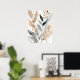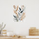 This print features an abstract image of botanicals in neutral shades of muted tan or beige and grey on a white background with small splatters of paint in matching colours. This attractive poster has a boho chic aesthetic and will provide a touch of nature and sophistication to any room. This unframed print is available in various sizes to fit standard frames.