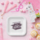 These graduation party paper plates feature the text "Congratulations 2026 Grad" and is accented with dark purple paint brush strokes.