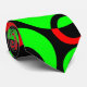An exciting, fun, dynamic, bold modern abstract design made up of circular bubble like shapes in vibrant contrasting red and green with black.