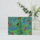 This is a beautiful array of colorful butterflies set against an abstract fern background. The butterflies with their delicate wings and intricate patterns along side the abstract ferns with their curving lines and shades of greens creates a sense of wonder and a whimsical depth of movement.