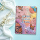 Personalized, spiral-bound notebook with butterflies and hydrangeas design. Blue butterflies and orange Monarchs, along with little bumblebees, fly to hydrangeas and other flowers. Colors are pink, blue, yellow and orange with printed, light blue text. Perfect for the nature lover and flower grower.